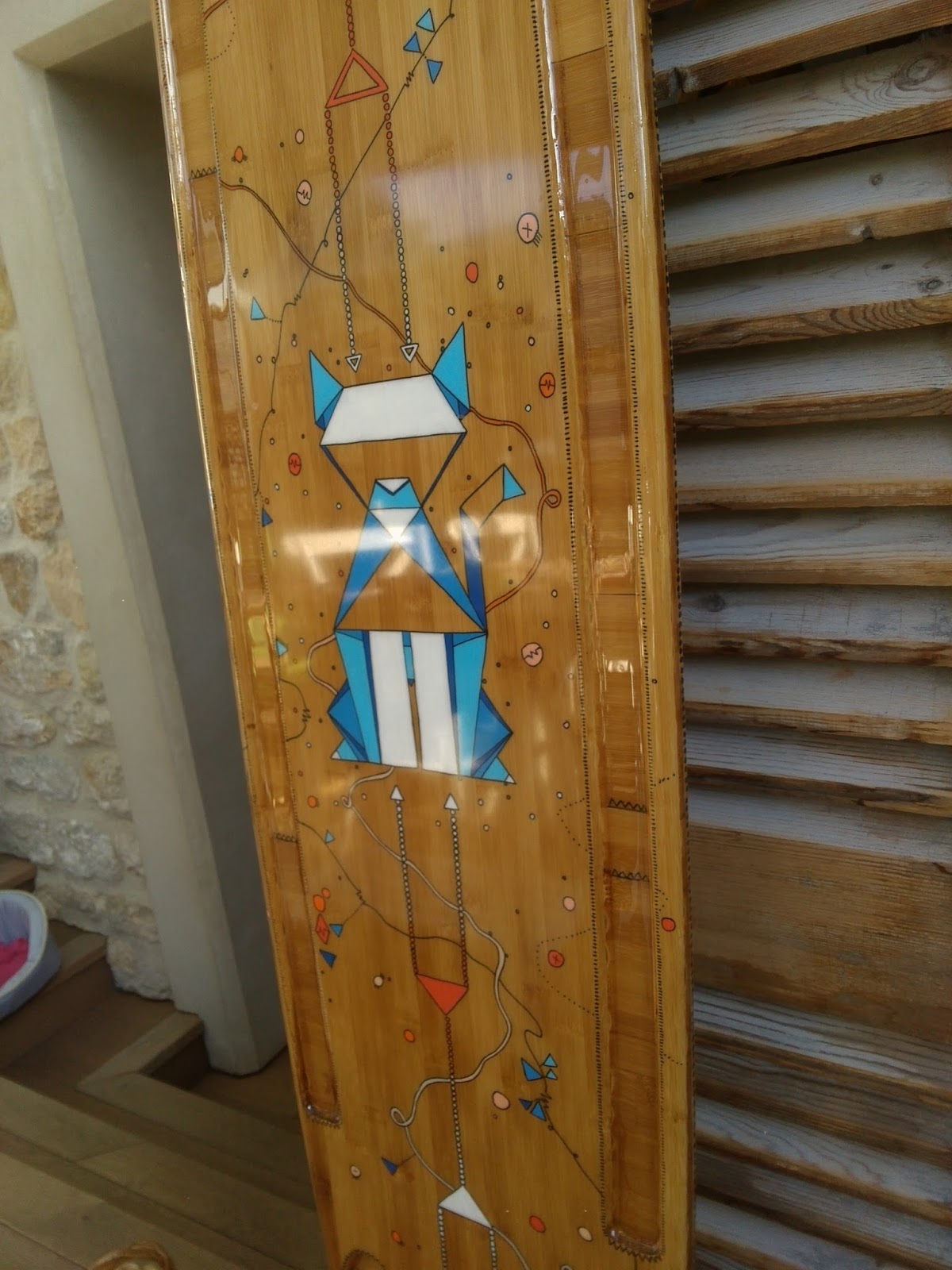 Depuis j'ai fait évoluer le modèle. Outre l'évolution légère de l'outline. Le plus grand changement a été fait sur la carène, on est passé du simple concave avec montage twin demi lune au simple concave bordé d'un V avec un montage de quatre plugs permettant de jouer dans le changement de configuration de dérives.